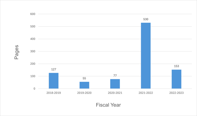 One file was carried over from the previous fiscal year. Of the five Privacy Act requests completed during 2022-2023, CATSA processed 763 pages; an average of 153 pages per request.